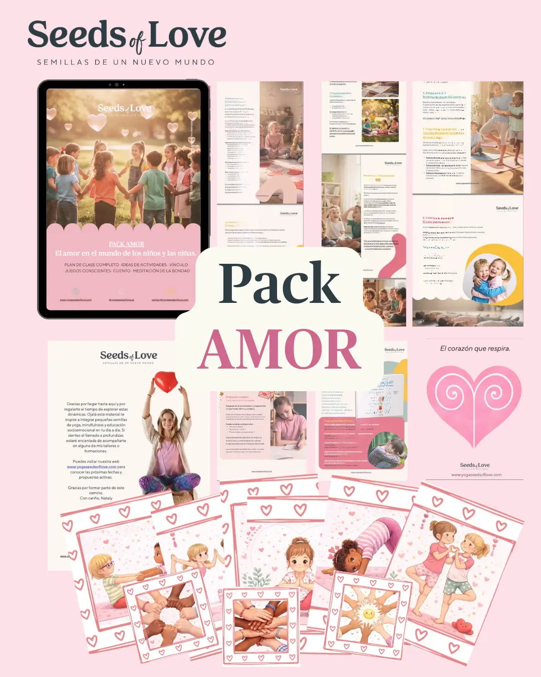 PACK DIGITAL AMOR: Plan de clase/taller sobre el amor (3 - 14 años) + juegos, tarjetas de yoga, cuento, meditación y recursos imprimibles. - Seeds of love Yoga